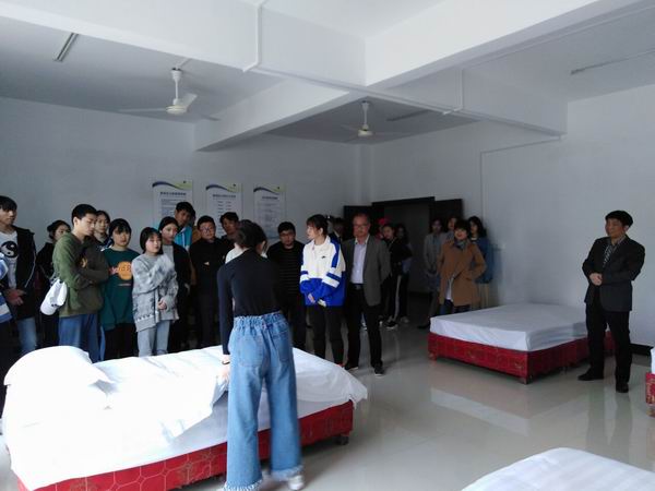 伟德国际victor1946老师向该校师生介绍了我院发展现状和专业建设情况,带领大家参观了本院中西餐实训室、茶艺实训室、酒吧实训室、模拟导游实训室,随后我院酒店管理专业学生为来访师生示范表演了茶艺、调酒和中西餐摆台、中式客房铺床等专业技能操作。旅游管理专业学生为来访师生进行模拟导游讲解。该校师生对我院师生精湛的业务能力发出由衷赞叹,并且与我院师生就专业问题进行深入交流和探讨,纷纷表示此行收获满满。