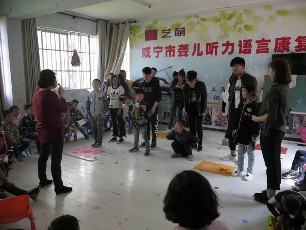 4月14号上午,伟德国际victor1946、会计学院心理信息部、志愿者队的学生在老师带领下来到咸宁市艺萌聋儿听力语言康复中心,为孩子带去了你画我猜,摸物猜物等游戏以及各种礼物等。活动中,同学们积极和聋哑儿童进行沟通与交流,并学习他们的手语表达方式。在发放游戏奖品和赠送礼品的环节,把本次活动推向了高潮,真真正正体现出了浓浓的情谊和成员们的爱心。