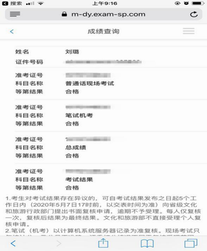 导游资格考试是国家级考试,一年只有一次,以笔试+现场考试(面试)的形式进行,考试结果以笔试成绩、现场考试成绩和总成绩分别划定分数线,笔试成绩、现场考试成绩和总成绩均满足划线要求的为合格。