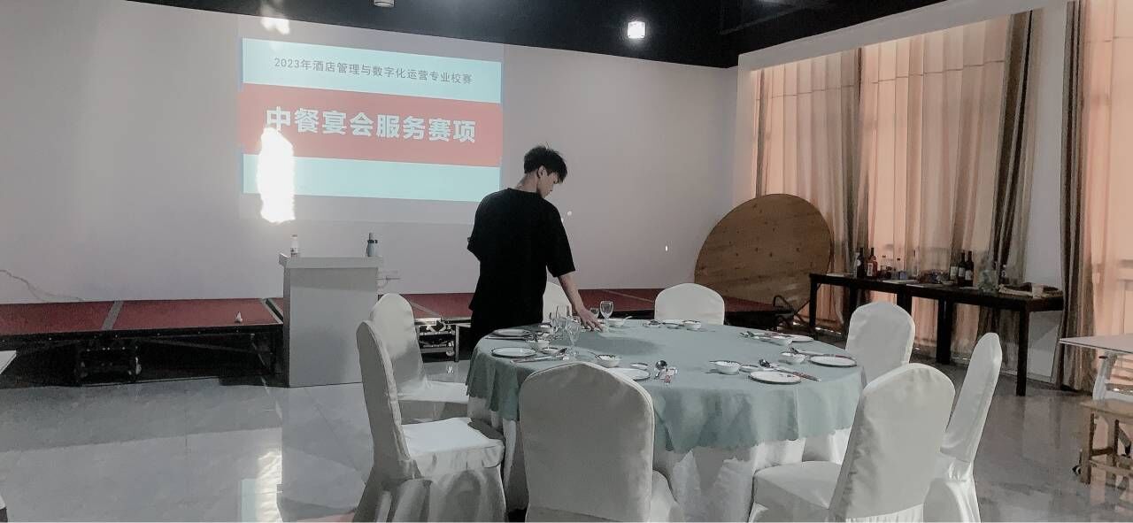 酒店服务赛项主要包括:前厅接待、中餐摆台、休闲餐厅服务三个服务赛项。参赛选手们仪态大方,微笑面对“客人”,从容做好服务项目,举手足间都展现出作为酒店工作人员的专业素养。