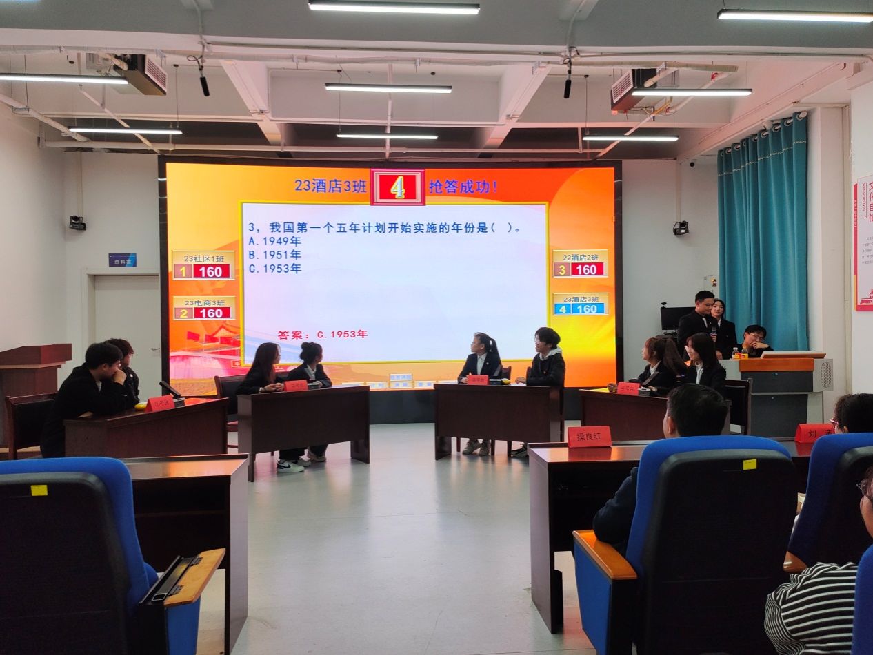 接下来的知识竞赛环节气氛热烈,竞赛题库紧密围绕“四史”设计,题型为必答题、抢答题、风险题。经过激烈角逐,最终23级社区管理1班获得冠军。比赛结束,由伟德国际victor1946党总支支委操良红老师就活动的设计、选手的表现作点评。
