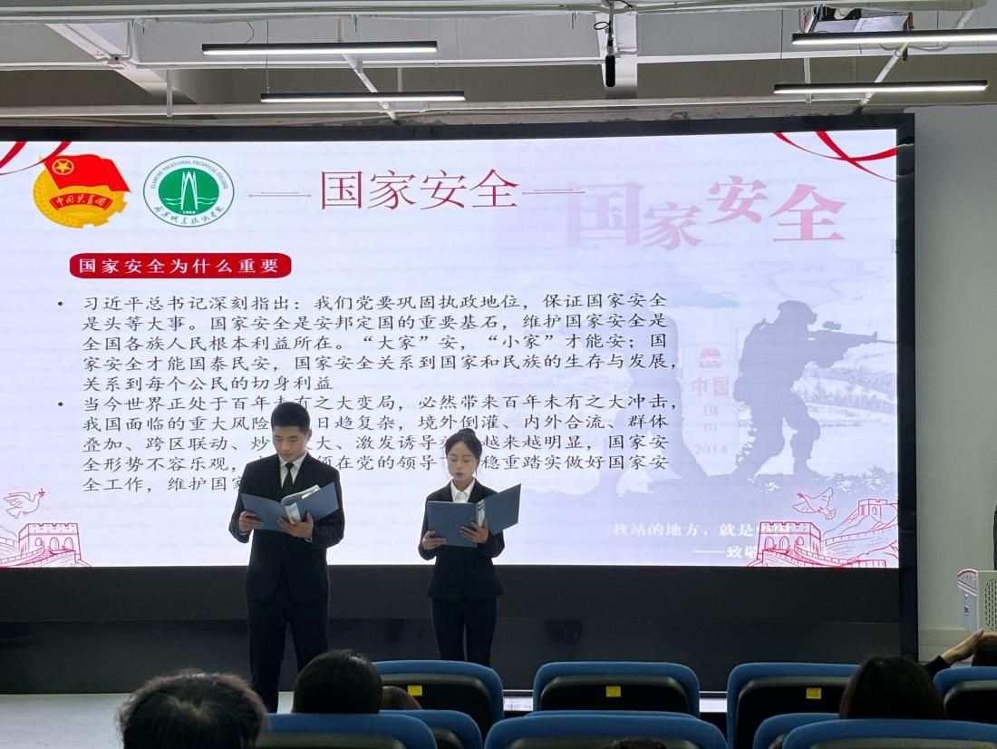 4月14日,辅导员组织各班级召开以“国家安全,青春挺膺”为主题的国家安全教育主题班会。班会上,辅导员们以知识宣讲、视频学习及分组讨论等形式,引导同学们深入理解国家安全的重要性、强化防范和应对国家安全风险的意识。4月15日,学院组织全体师生共同学习“千万高校学生同上一堂国家安全教育课”公开课,引导全体师生筑牢国家安全的思想根基。