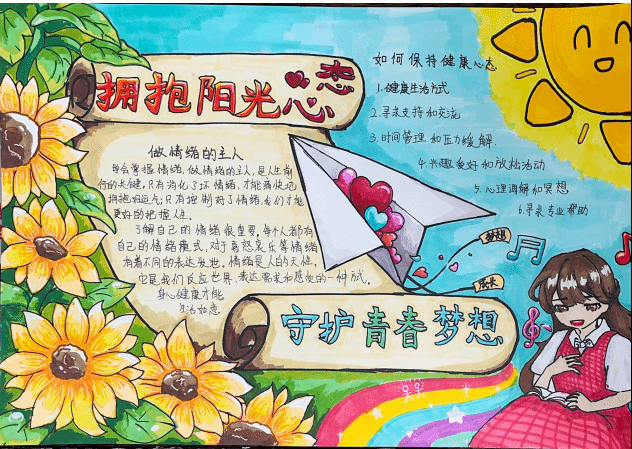 四、“拥抱阳光心态,守护青春梦想”心理健康教育主题手抄报大赛