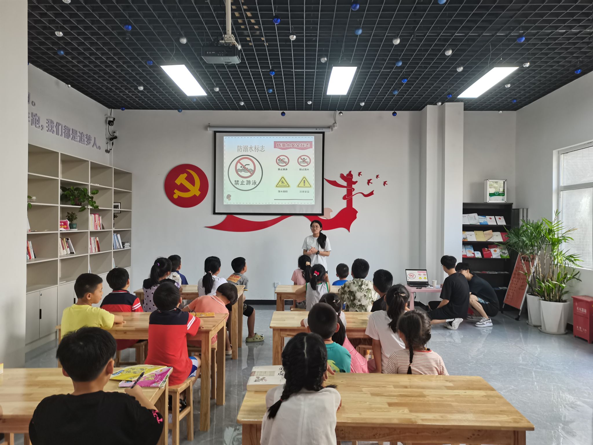 第一节课,志愿者们以《珍爱生命,预防溺水》为主题,宣传、普及暑期防溺水相关知识,加强小朋友们的安全教育,提高小朋友们的安全意识。