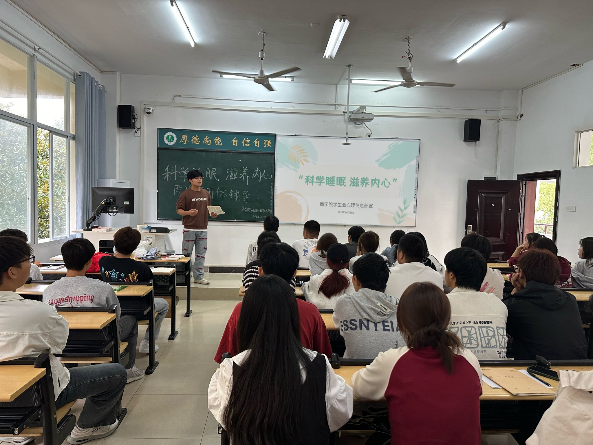 睡眠是人体重要的生理需求,对于维护心理健康同样至关重要,然而,现代生活节奏加快,越来越多的学生受到睡眠问题的困扰。为唤醒大学生对睡眠重要性的认识,提高睡眠质量,将更多精力投身到学习和生活中,彰显青年人的青春活力,10月16日,伟德国际victor1946二级心理辅导站面向全体心理委员在文华楼开展睡眠主题心理健康活动,引导同学们正确看待睡眠问题,促进身心健康。