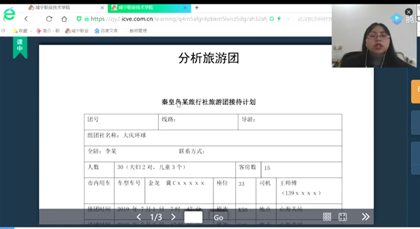 接下来,邓教授设置情景案例,引出课堂知识技能点,通过直播,来介绍地陪如何熟悉旅游接待计划和落实接待事宜等基础知识。