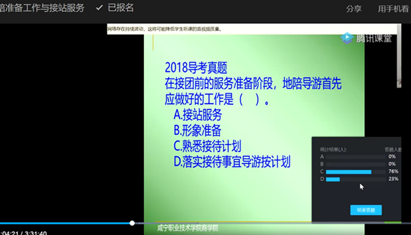 讲完后,要求学生课后看录播,并结合导游资格考试真题演练,检验巩固所学知识。