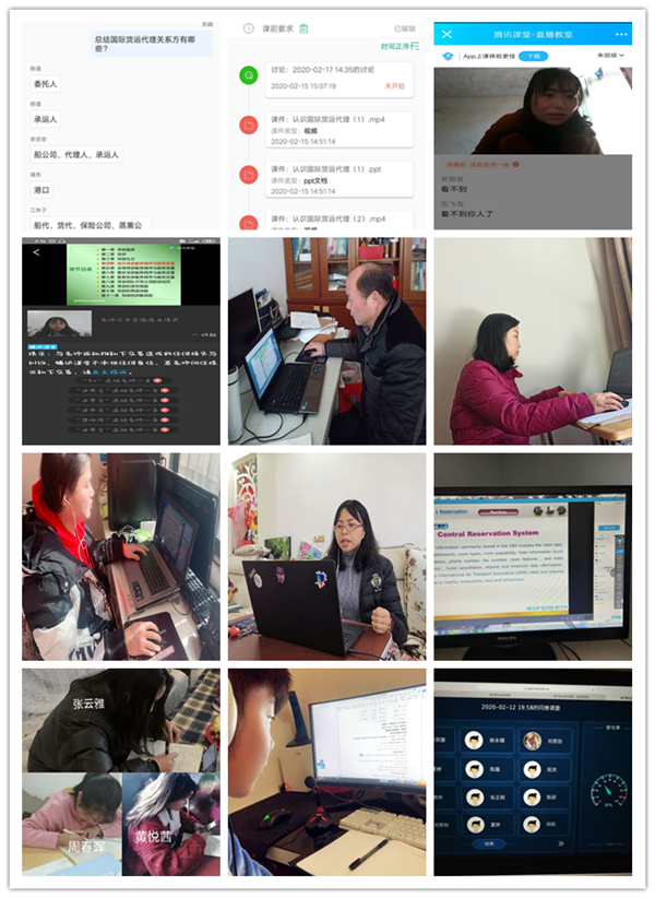 2月17日起,伟德国际victor1946线上教学正式开课。三个年级16个教学班级的600多名学生,在家使用手机或台式电脑。开课第一天,因各大平台负荷过大,部分平台性能不稳定,教师们无法进入平台开展教学活动。老师们积极的应对并且及时的调整,灵活借用QQ屏幕分享、腾讯课堂、腾讯会议等直播平台授课,发挥组合优势并弥补各自使用的不足,确保了“线上教学第一课”的顺利开展,整体教学效果良好。2月19日之后,因智慧职教平台在线课程教学时间进行错锋时段的调整,专任教师利用平台上传常规资料、分享教学体会、参与教学研讨的积极性和操作熟练程度逐日改观,智慧职教网站的功能性和利用率大幅度提升。在教学过程中,教师结合疫情发展,积极开展课程思政,鼓励学生锻炼身体,同学们在参与课堂的直播中,学习积极认真,按时签到听课,完成教师布置的各项作业和话题讨论,取得了与面对面教学一致的良好教学效果。