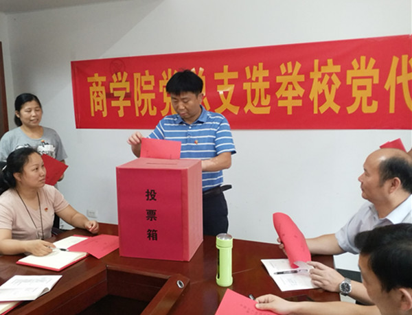 会上,主持人宣读候选人、监票人、计票人名单。经计票人清点到会人数,监票人检查加封票箱,分发选票等环节,主持人介绍候选人简介及《填写选票说明》。每位党员面对投票箱投出了自己神圣的一票,充分行使了党员权利,履行了党员义务。通过无记名投票,按照差额选举办法,最终从7名党代表候选人预备人选中选举6名党代表参加校第一次党代会,报送学校党委进行资格审查。