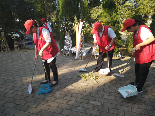 在肃穆庄重的烈士陵园,大家用深沉的三鞠躬和默哀向烈士致以最崇高的敬意!接着在李莉同志的领读下,党员同志重温入党誓词,不忘初心、牢记使命!镇咸辉同志带领姚发、王素琴及陈希望三位支部书记,向何功伟烈士纪念碑敬献花篮,所有在场师生相继走到烈士墓前敬献鲜花并瞻仰烈士纪念碑。接着镇咸辉书记给师生们上了一堂生动的党课,告诫师生们要珍惜革命烈士用鲜血换来的来之不易的幸福生活。最后,师生们共同打扫陵园,整理花篮。