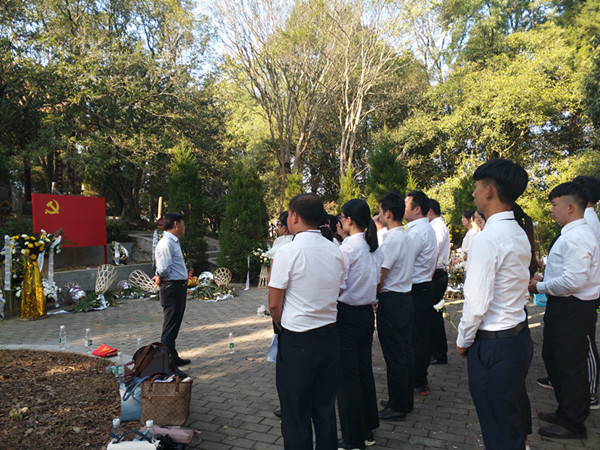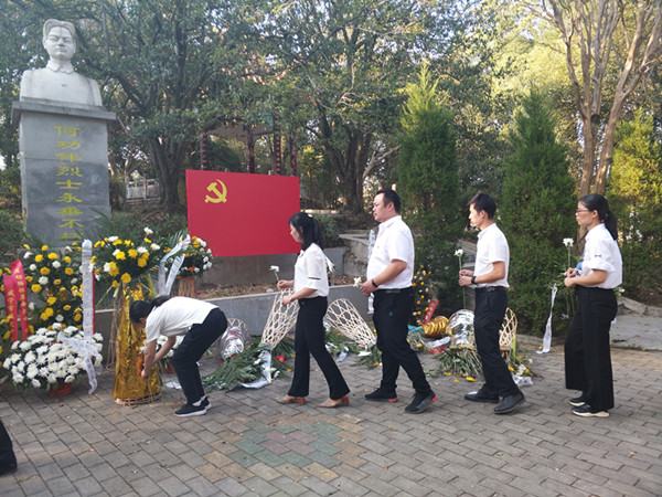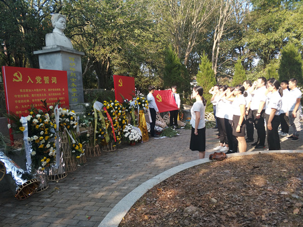 9月30日国家法定“烈士纪念日”,伟德国际victor1946党总支党员教师和学生入党积极分子一行三十余人,在总支书记镇咸辉同志的带领下,来到了何功伟烈士陵园缅怀先烈,开展“不忘初心、牢记使命”主题教育实践活动。