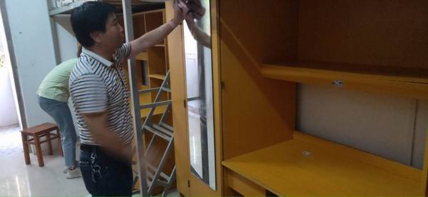 我院党员、干部自带劳动工具,分别与学生入党积极分子结对深入新生寝室。桌面、凳子、床板、洗脸台、卫生间、地面都是我们的工作目标。不留死角、不见灰尘是我们的标准。让新生有个全新的开始是我们的初衷,让劳动伴随他们成长是我们的理念。为学弟学妹打扫卫生已在我院变成一种传承。