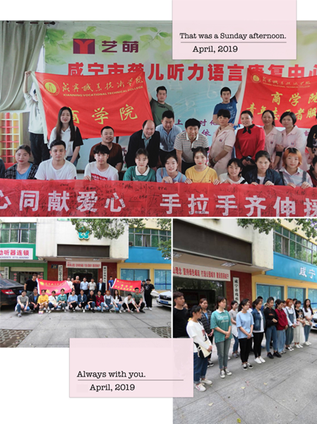 为加强当代大学生思想道德修养,培育社会主义核心价值观,弘扬青年志愿服务精神,2019年4月30日,伟德国际victor1946团总支学生会组织了我院20余名青年志愿同学,在党总支书记镇咸辉、学生党支部书记姚发和团总支负责人刘涛等党员教师的带领下,走进咸宁市艺萌聋儿听力语言康复中心,看望慰问中心听障儿童,开展“心连心同献爱心,手拉手齐伸援手”公益爱心义卖主题活动。