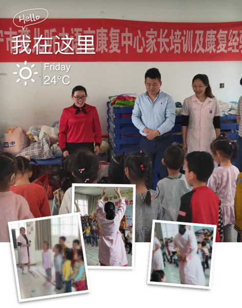 咸宁艺萌康复中心负责人李老师详细介绍中心基本情况,并带领我们逐一观摩了根据不同年龄层次和听障程度,将现有的60余名儿童分成10个小班的现场教学。课间,还组织孩子们为大家表演了精彩的充满了童趣的说、唱节目。最后,刘涛老师将青年志愿者们分成10个小组,带着通过近一周校园义卖和接受募捐筹集的玩具、零食和衣物,走进每一个班级与小朋友们进行互动,为孩子们讲故事、玩游戏,教他(她)识字、堆积木、折纸和画画,单纯而敏感的孩子们逐渐打开心扉,时而激动得手舞足蹈,时而被逗得哈哈大笑。在活动接近尾声时,小朋友们依依不舍地和志愿者们相互拥抱、挥手告别。李老师呼吁更多的人以实际行动来关爱听障儿童,让他们感受到社会大家庭的温暖。