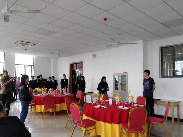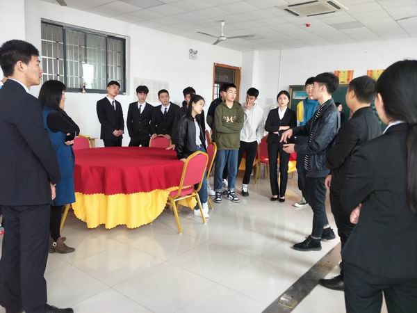 3月21号上午,伟德国际victor1946酒管教研室负责人胡翠梅副教授带领我院部分师生来到职教(集团)学校旅游管理系,受到了职教集团易元红校长及该校师生的热烈欢迎。我校教师对该系学生在仪容仪表仪态、中餐宴会摆台、西餐宴会摆台的具体细节和操作方面提出了细致中肯的意见和建议;学生们也分别从他们参加技能高考和省技能大赛的角度分享了自身的经验和心得,该校师生觉得受益匪浅。