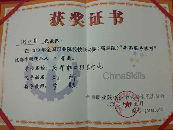 17旅游管理专业刘娜同学喜获二等奖